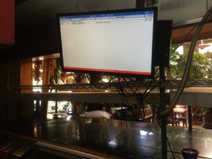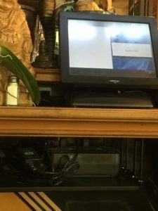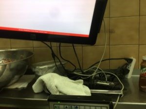 Kitchen window and corner area. Brought data from above and ran power from the UPS below the printer. As little exposure as possible. The electrical you do see is for their refrigeration. This was a tremendous amount of detail work and a lot of pulling wire. Not sure they appreciate or understand the complexity and time it took… Let alone the fact that all work had to be performed between 9:30pm and 2am.