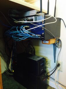 Prior IT guy cut the networking infrastructure wires and then had to add switches to re-connect everything. Why he cut the wires? I am not sure… that is part of the reason I believe they brought me in. I removed the switches and installed patch panels. Before if the power went out the entire network in this office went down. This way we only needed UPS’s in the server closet to keep everything running. All user devices were laptops. First three are before and last is the after.